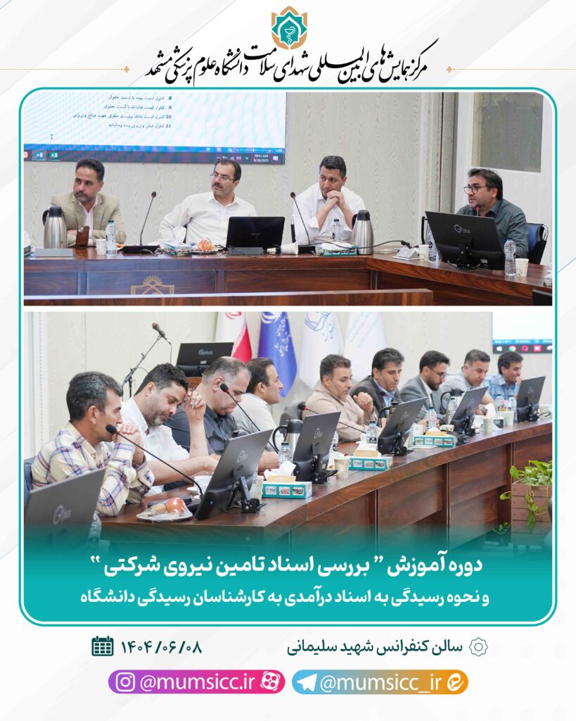 دوره آموزش “ بررسی اسناد تامین نیروی شرکتی ” و نحوه رسیدگی به اسناد درآمدی به کارشناسان رسیدگی دانشگاه با حضور کارشناسان رسیدگی به اسناد مالی واحدهای تابعه دانشگاه در سالن کنفرانس شهید سلیمانی مرکز همایش های بین المللی شهدای سلامت دانشگاه علوم پزشکی مشهد برگزار گردید.