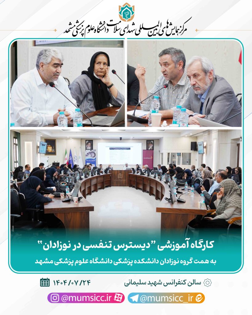 کارگاه آموزشی “دیسترس تنفسی در نوزادان” به همت گروه نوزادان دانشکده پزشکی دانشگاه علوم پزشکی مشهد و دبیری علمی آقای دکتر عباس بسکابادی در سالن کنفرانس شهید سلیمانی مجتمع شهدای سلامت دانشگاه علوم پزشکی مشهد برگزار شد.